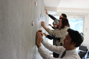 集まった全員で空間のイメージを膨らませ、理想の空間・タイルについてディスカッション。