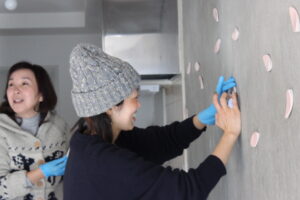 「施工もみんなでやりましょう!」タイルに触れる機会も。