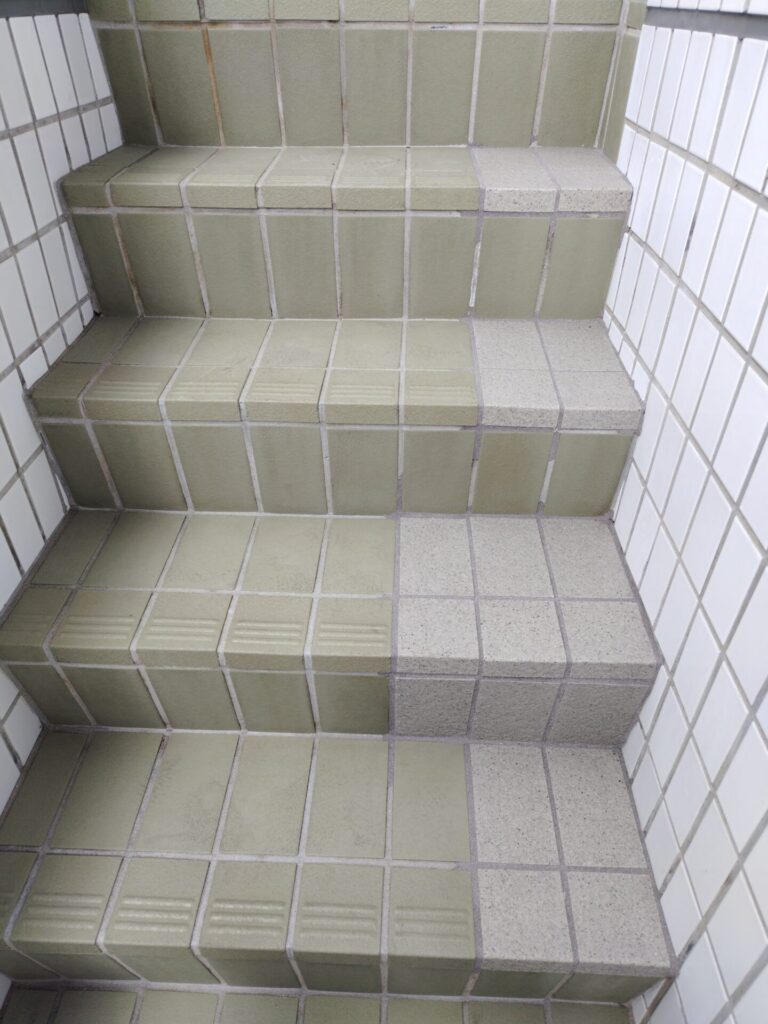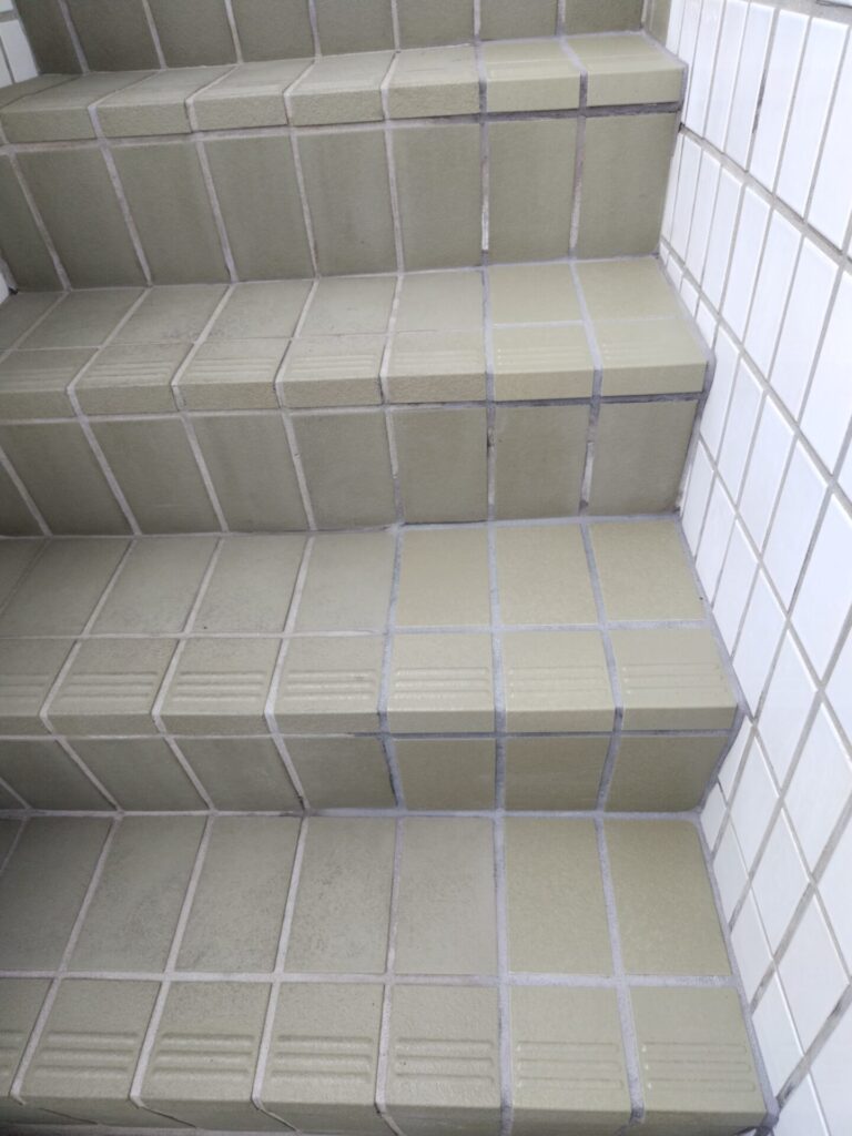 今回ご紹介するのは、外部階段とアプローチ部分のタイル補修・色調調整の事例です。