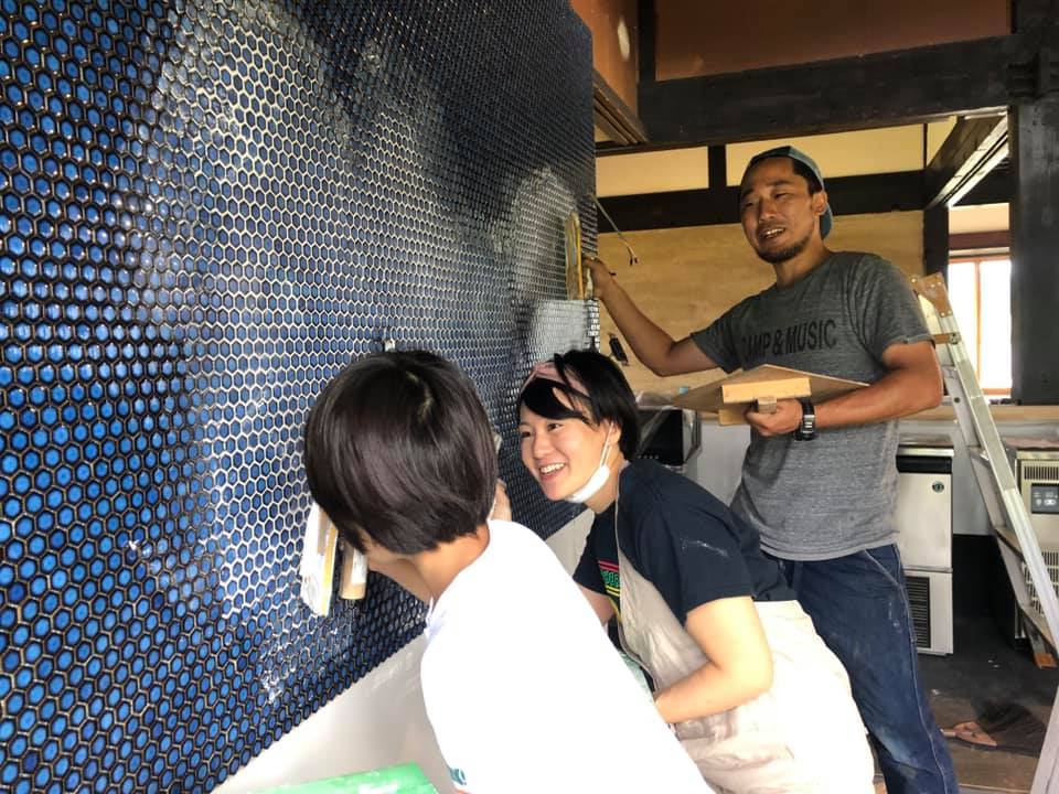 一枚一枚を手で貼っていく時間は、単なる作業ではなく、「この場所を自分たちでつくっている」という実感そのものです◎